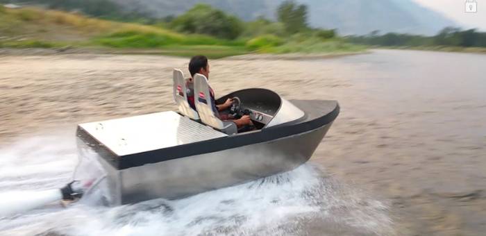 The Cope 10ft Jet Boat is modeled after the New Zealand jet dingy. It is a high speed inboard jet powered boat designed to be used in shallow, rocky rivers.